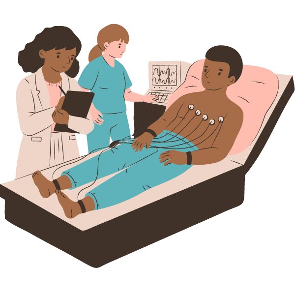 - Certain areas of the skin are cleaned, and electrodes are placed on them.